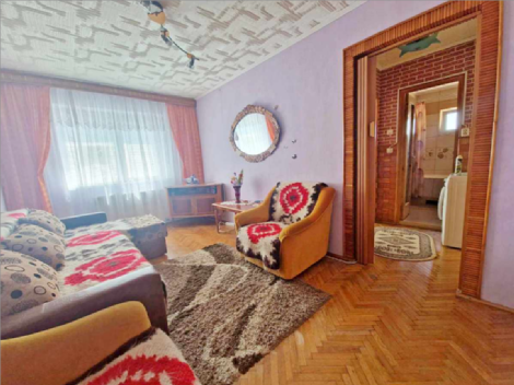 Apartamentul are o suprafata utila de 56 mp se afla la etajul 1, fiind compartimentat astfel: bucatarie, trei camere, camara, baie, hol, debara, balcon inchis